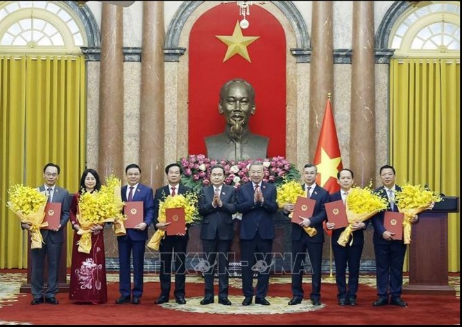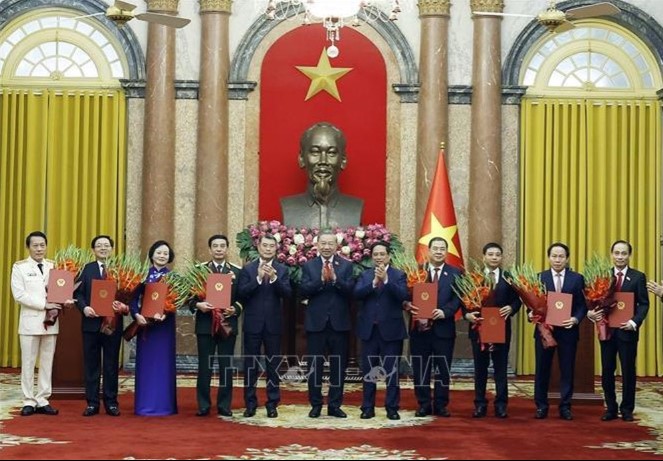 Tổng Bí thư, Chủ tịch nước cũng đã trao Quyết định bổ nhiệm các đồng chí Bộ trưởng và Thủ trưởng cơ quan ngang bộ gồm: Đại tướng Lương Tam Quang, Bộ trưởng Bộ Công an; Lê Hoài Trung, Bộ trưởng Bộ Ngoại giao; Đỗ Thanh Bình, Bộ trưởng Bộ Nội vụ; Ngô Văn Tuấn, Bộ trưởng Bộ Tài chính; Hoàng Thanh Tùng, Bộ trưởng Bộ Tư pháp; Lê Mạnh Hùng, Bộ trưởng Bộ Công Thương; Lâm Thị Phương Thanh, Bộ trưởng Bộ Văn hóa, Thể thao và du lịch; Trần Hồng Minh, Bộ trưởng Bộ Xây dựng; Hoàng Minh Sơn, Bộ trưởng Bộ Giáo dục và Đào tạo; Vũ Hải Quân, Bộ trưởng Bộ Khoa học và Công nghệ; Đào Hồng Lan, Bộ trưởng Bộ Y tế; Nguyễn Đình Khang, Bộ trưởng Bộ Dân tộc và Tôn giáo; Trịnh Việt Hùng, Bộ trưởng Bộ Nông nghiệp và Môi trường; Đặng Xuân Phong, Bộ trưởng, Chủ nhiệm Văn phòng Chính phủ; Phạm Đức Ấn, Thống đốc Ngân hàng Nhà nước; Nguyễn Quốc Đoàn, Tổng Thanh tra Chính phủ.